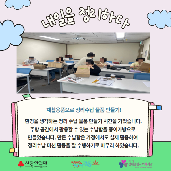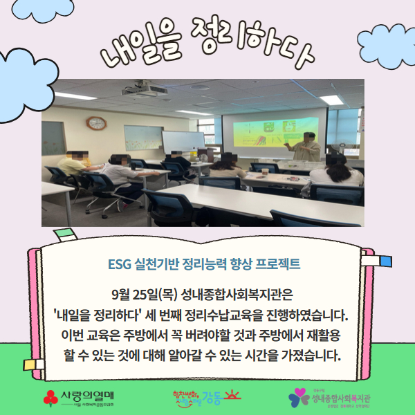 2025년 내일을 정리하다 정리수납교육 및 미션 활동 3회기 > 성내이야기