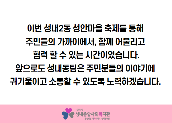 성내종합사회복지관 성내동팀에서는 성내2동 성안마을축제에 참가하여
