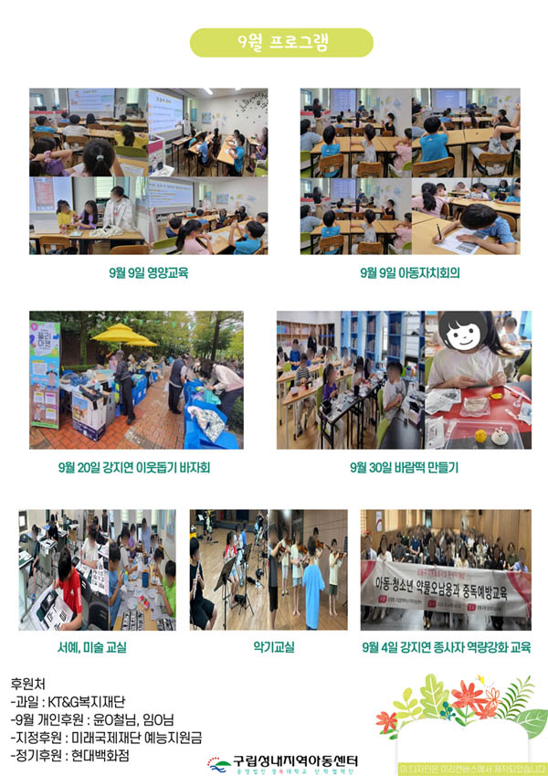 구립성내지역아동센터에서 진행된 9월 프로그램입니다.