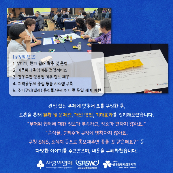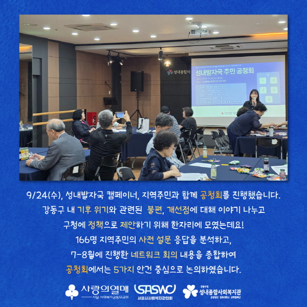 캠페이너, 지역주민과 정책 제안을 위한 공청회를 진행했습니다.