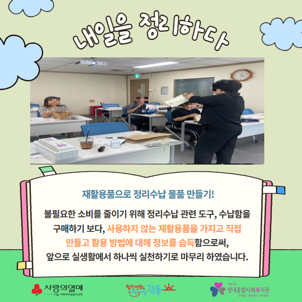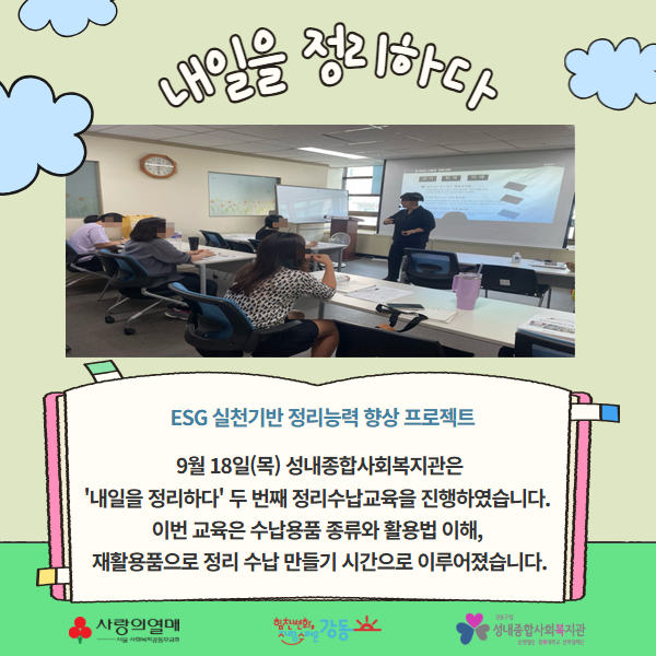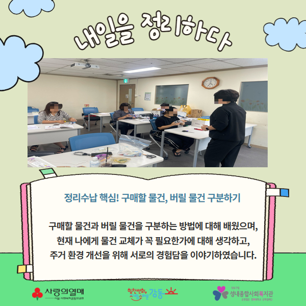 2025년 내일을 정리하다 정리수납교육 및 미션 활동 2회기 > 성내이야기
