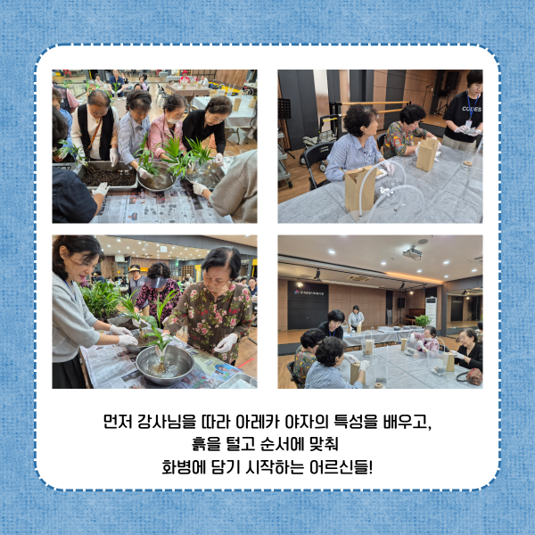 노인맞춤돌봄서비스 3차 사회참여 프로그램 "행복담" 원예 프로그램 5회기를 진행하였습니다.