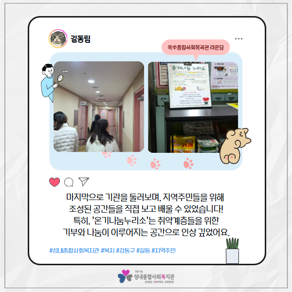 지난 11월 26일, 길동팀에서는 옥수종합사회복지관 기관 방문을 진행했습니다.