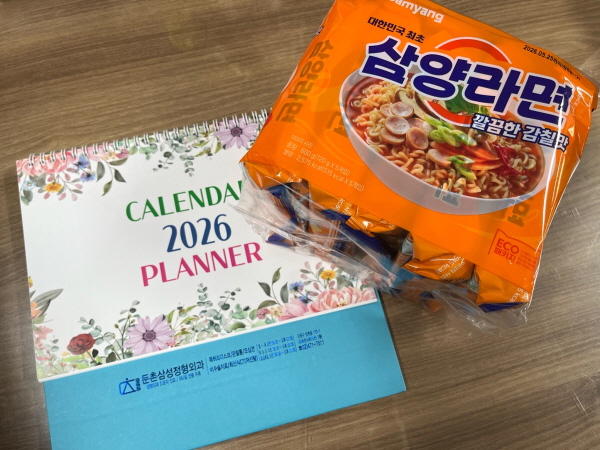 후원물품은 라면(5개입) 120개이며, 지역주민 120명에게 달력과 함께 전달될 예정입니다.