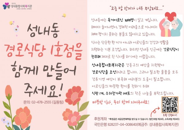 어르신들의 든든한 한 끼를 위한 모금 캠페인을 진행하고 있으니, 여러분의 따뜻한 관심과 참여 부탁드립니다.