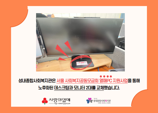 서울 사회복지공동모금회에서 지원하는 열매PC지원 사업에 선정되었습니다.