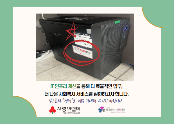 노후된 PC교체로 안정적인 업무 환경에서 더 집중도 높은 복지 서비스를 기획 할 수 있게 되었습니다.
