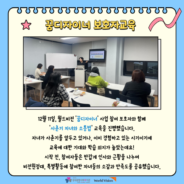 12월 11일, 월드비전 '꿈디자이너' 사업 참여 보호자와 함께