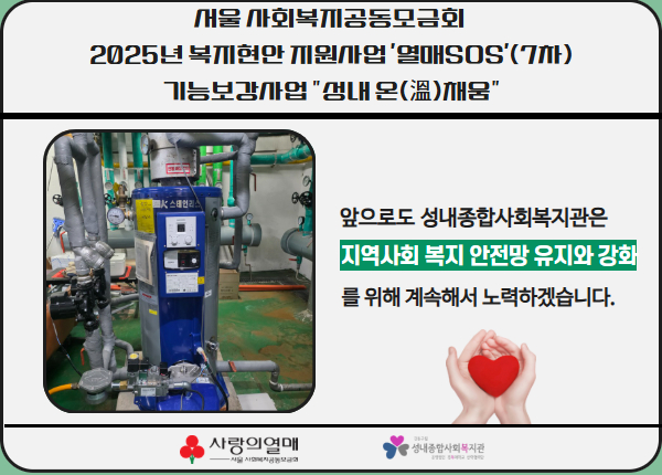 서울 사회복지공동모금회의 '열매SOS(7차)' 기능보강사업 지원 덕분에,